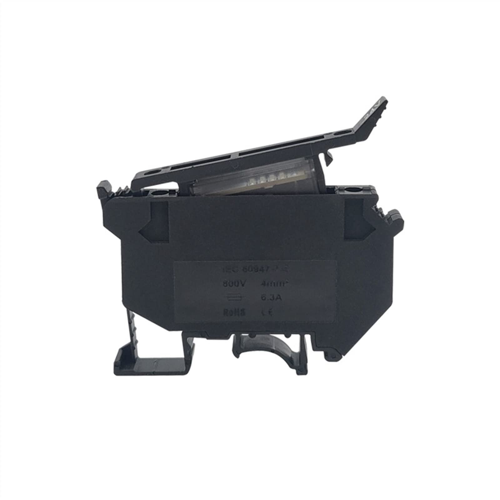 – It features a screw connection for secure wiring, a disconnect lever for easy fuse replacement, and a housing that can accommodate a fuse (often 5x20mm or 6.3x32mm).